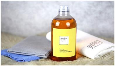 ① ぬるま湯に洗剤と消臭添加剤を入れてよく混ぜます。