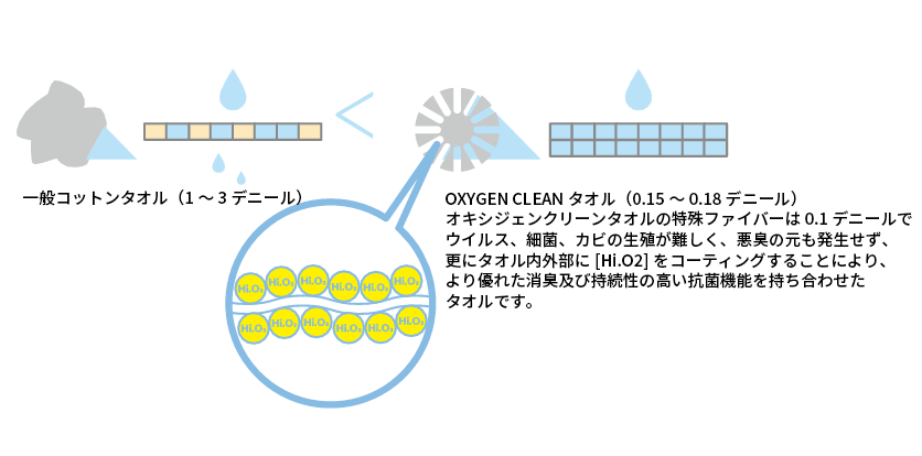 なめらかな肌触り、優れた吸収力と消臭力で繊維の間までも清潔に保つ驚きのタオルです。